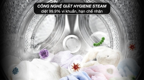 - Giặt hơi nước Hygiene Steam sử dụng hơi nóng ở nhiệt độ cao để diệt khuẩn lên đến 99.9%, loại bỏ chất gây dị ứng, thích hợp cho người nhạy cảm hoặc gia đình có trẻ nhỏ.