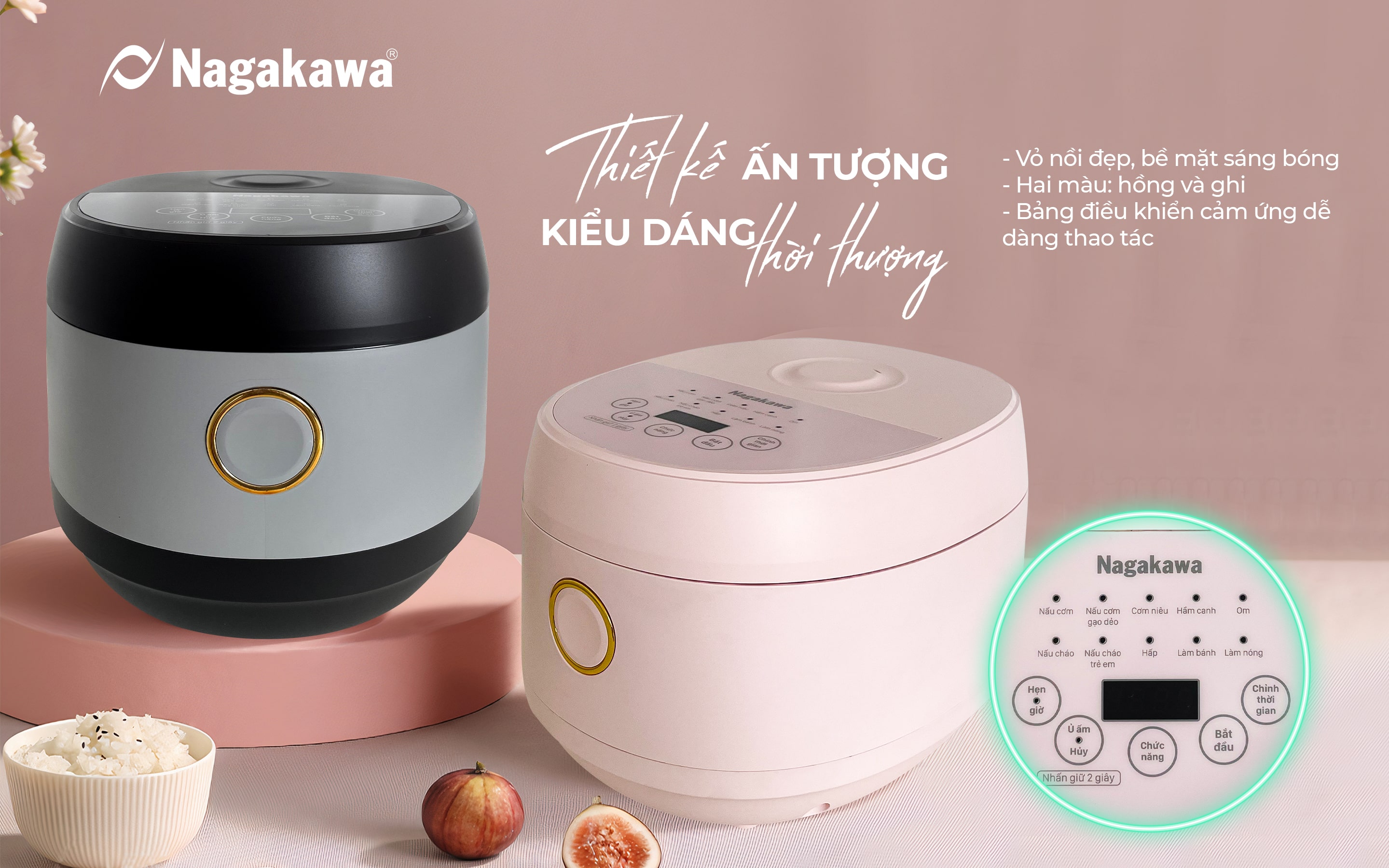Nồi cơm điện tử lòng niêu Nagakawa NAG0142 được thiết kế tối giản nhưng vô cùng bắt mắt. Sản phẩm có 2 phiên bản là màu hồng trẻ trung, xinh xắn dành cho người tiêu dùng yêu thích sự nữ tính và nhẹ nhàng. Phiên bản còn lại mang màu xám - đen trung tính phù hợp với mọi căn bếp. Nồi được cấu tạo từ nhựa cao cấp cách điện tuyệt đối, bề mặt láng mịn tương đối dễ vệ sinh, hạn chế bám bẩn.