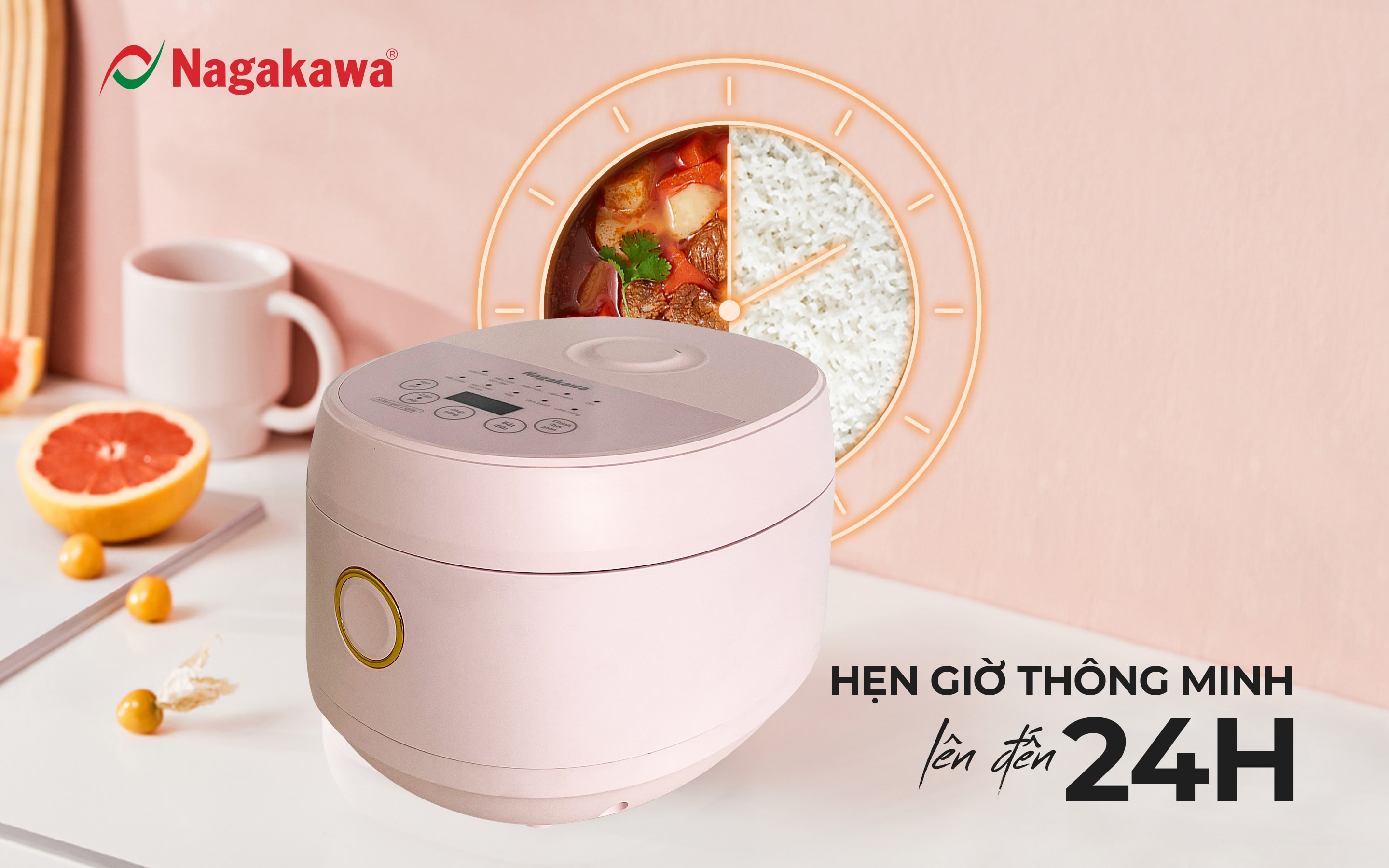 Đáp ứng nhu cầu của cuộc sống bận rộn Nồi cơm điện tử lòng niêu Nagakawa NAG0142 được trang bị chức năng hẹn giờ thông minh lên tới 24h. Dù bận rộn, dù có mặt ở nhà, bạn vẫn có thể chuẩn bị nồi cơm dẻo thơm cho các thành viên khác trong gia đình.
