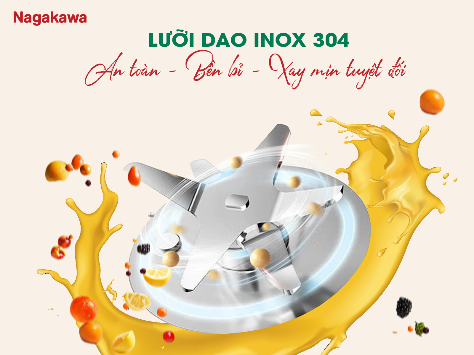 Lưỡi dao chất liệu inox 304 cao cấp, không gỉ, không phản ứng hóa học với thực phẩm, đảm bảo an toàn tuyệt đối cho sức khỏe gia đình. Đồng thời, thiết kế sắc bén giúp máy xay nhuyễn mịn ngay cả những nguyên liệu cứng kể cả các viên đá nhỏ, hỗ trợ tối đa quá trình chế biến.