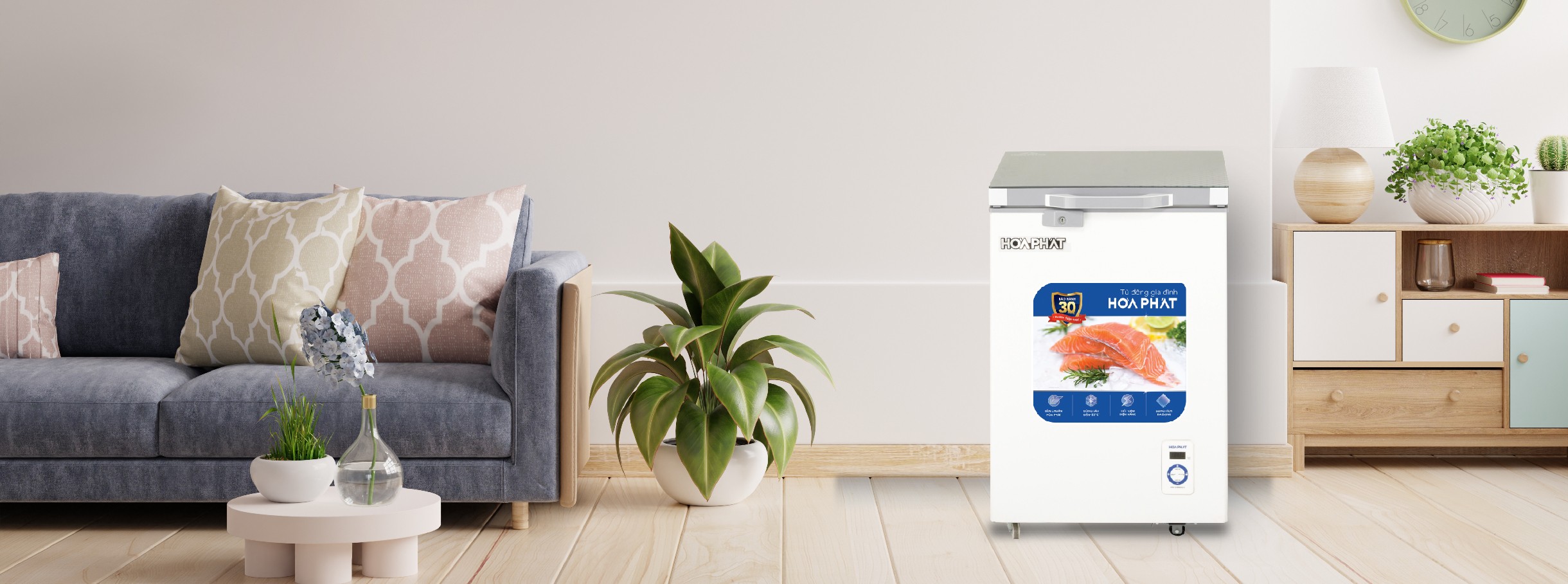 Tủ đông Hòa Phát trang bị công nghệ Extra Freezing đông sâu -30°C (*Dựa trên kiểm nghiệm nội bộ từ NSX), cho phép đạt độ lạnh sâu hơn tủ thông thường. Công nghệ này được tạo nên từ sự đồng bộ giữa máy nén khỏe, dàn lạnh dẫn nhiệt tốt, và môi chất lạnh Gas R290 hiệu suất cao, thân thiện môi trường.